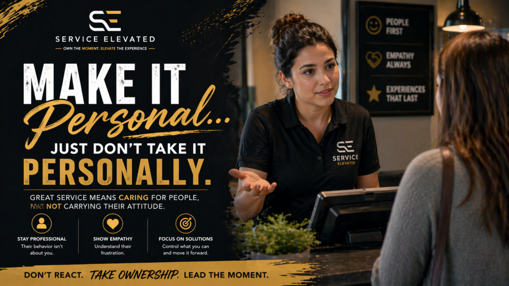 Customers bring their frustrations with them—missed expectations, wasted time, prior experiences that didn’t go well. By the time they get to you, you’re simply the person standing in front of them. If you take that personally, you lose your ability to lead the moment.